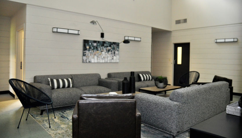 We were tasked with creating a welcoming, home-like environment for all of the men who would live there for a time. Being a former detention center, there was a lot working against us. The cold, block walls were a biggie. Lack of natural light was another. The wall color was pre-determined and paint was provided in bulk prior to hiring us, so we did have to work with the color throughout the entire campus.